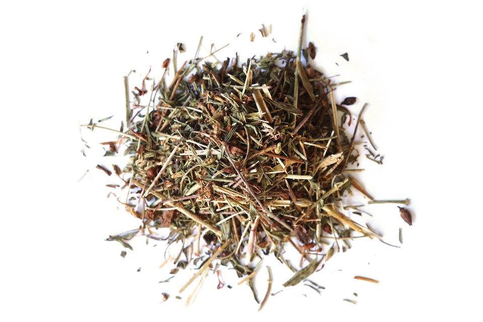 Hypericum perforatum is one of many species known commonly as St. John’s wort, and is the species most commonly associated with herbal preparations. It is native to Europe but has since been naturalized to other temperate climates around the world, with particular prominence in North America. The plant is a creeping perennial, producing star-shaped yellow flowers containing long, abundant stamens. St. John’s wort is traditionally harvested near the beginning of the flowering cycle on St. John’s Day, which falls annually on June 24th. The flowers continue blooming throughout the summer and may be freely harvested throughout the season.